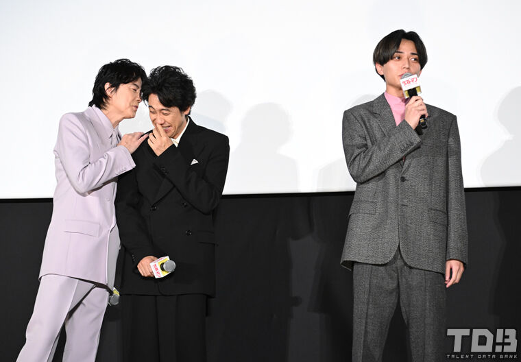 | 「映画ラストマン -FIRST LOVE-」新春ファースト舞台あいさつ>舞台あいさつに登壇し、笑顔の福山雅治(左)と大泉洋(撮影・松永 柊斗) - スポニチ Sponichi Annex (出典:スポニチ Sponichi Annex) |