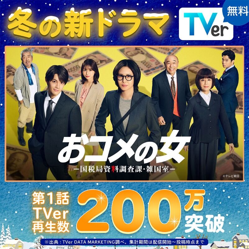 @thetvjp#松嶋菜々子 主演ドラマ「#おコメの女-国税局資料調査課・雑国室-」、 第1話の #TVer 再生数が200万回を突破 TVer見逃しはこちら👇 tver.app/3Lcmxuj?utm_ca… thetv.jp/news/detail/13… @TVer_info